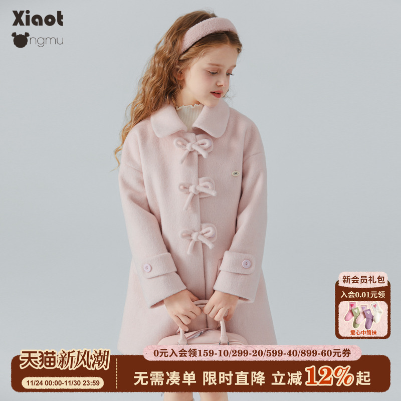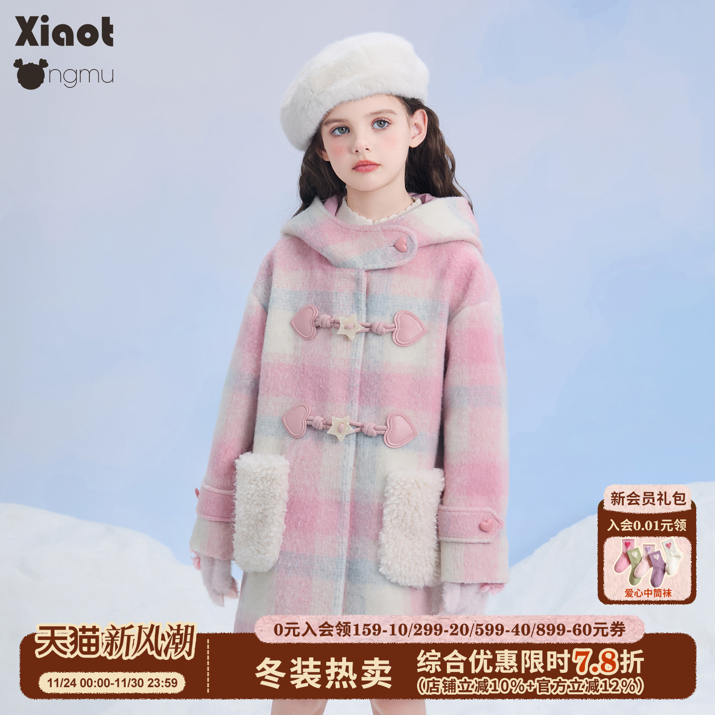 小童木 留洋千金风女童毛呢大衣冬季2025新款夹棉中大童呢子外套