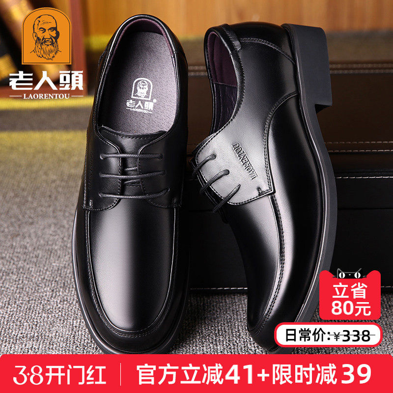 老人头皮鞋男真皮秋冬商务休闲皮鞋透气牛皮爸爸鞋系带特大码男鞋