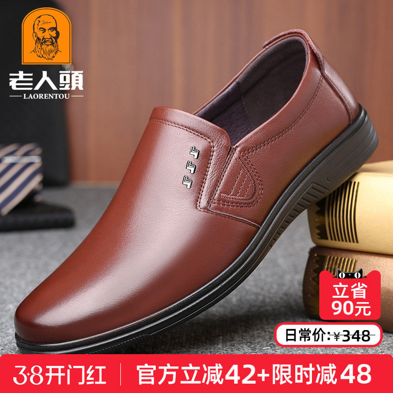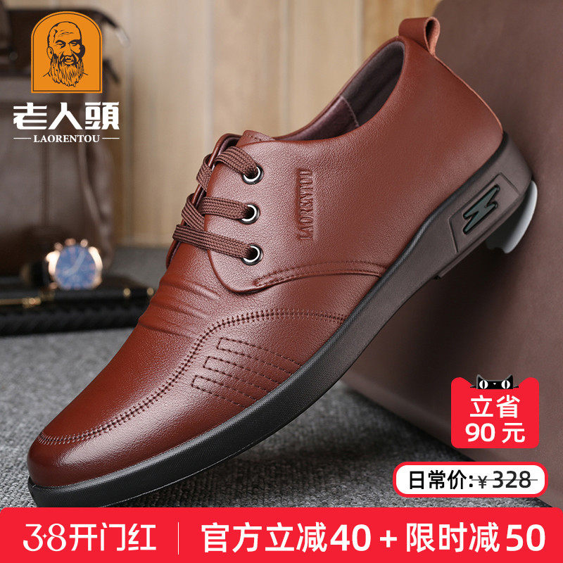 老人头男鞋春季新款牛皮商务休闲男士皮鞋真皮软底透气中年爸爸鞋