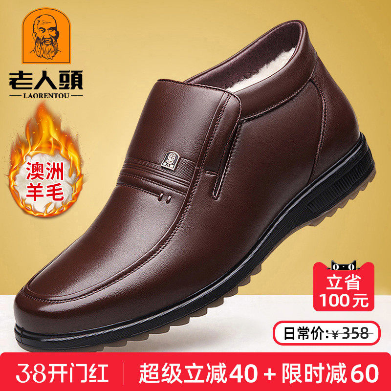 老人头皮鞋男冬季真皮休闲高帮鞋男棉鞋中老年羊毛保暖加绒爸爸鞋