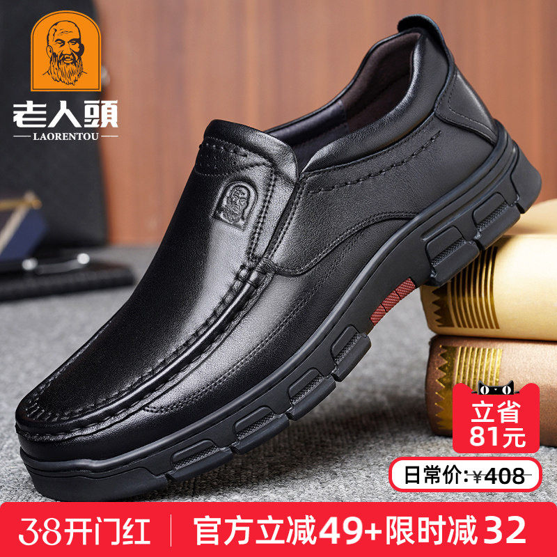 老人头皮鞋男真皮商务休闲秋季真牛皮透气软皮软底大码中年爸爸鞋