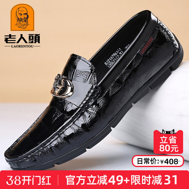 老人头男鞋秋季新款真皮商务休闲皮鞋男士软底透气潮流青年驾车鞋