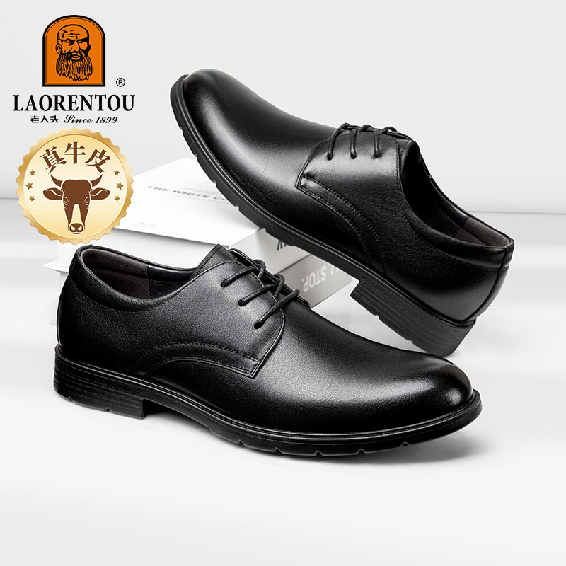 老人头男士皮鞋真皮头层牛皮商务正装皮鞋男春季新款软皮软底男鞋