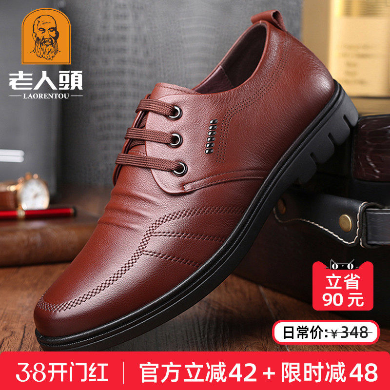 老人头男鞋春季真皮商务休闲男士皮鞋耐磨牛筋底中老年爸爸鞋透气