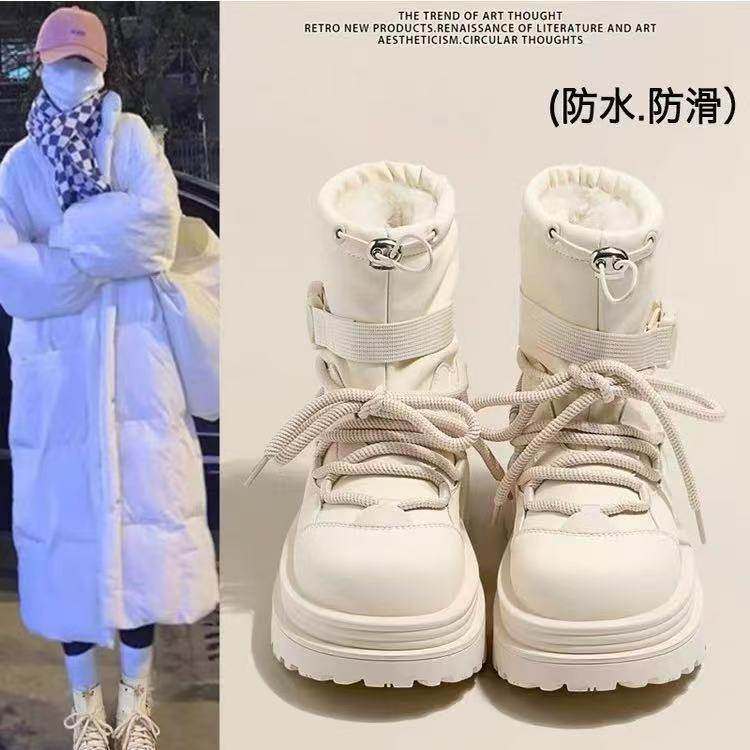白色雪地靴女增高棉鞋真皮靴子冬季保暖雪地鞋女款鞋子防水马丁靴