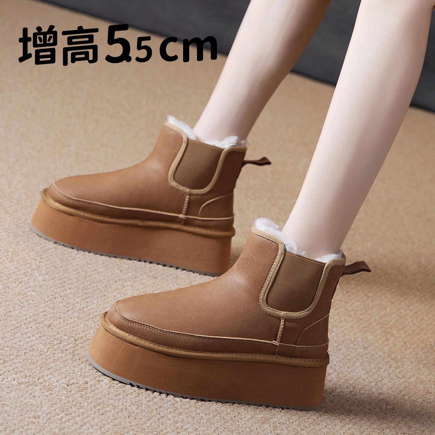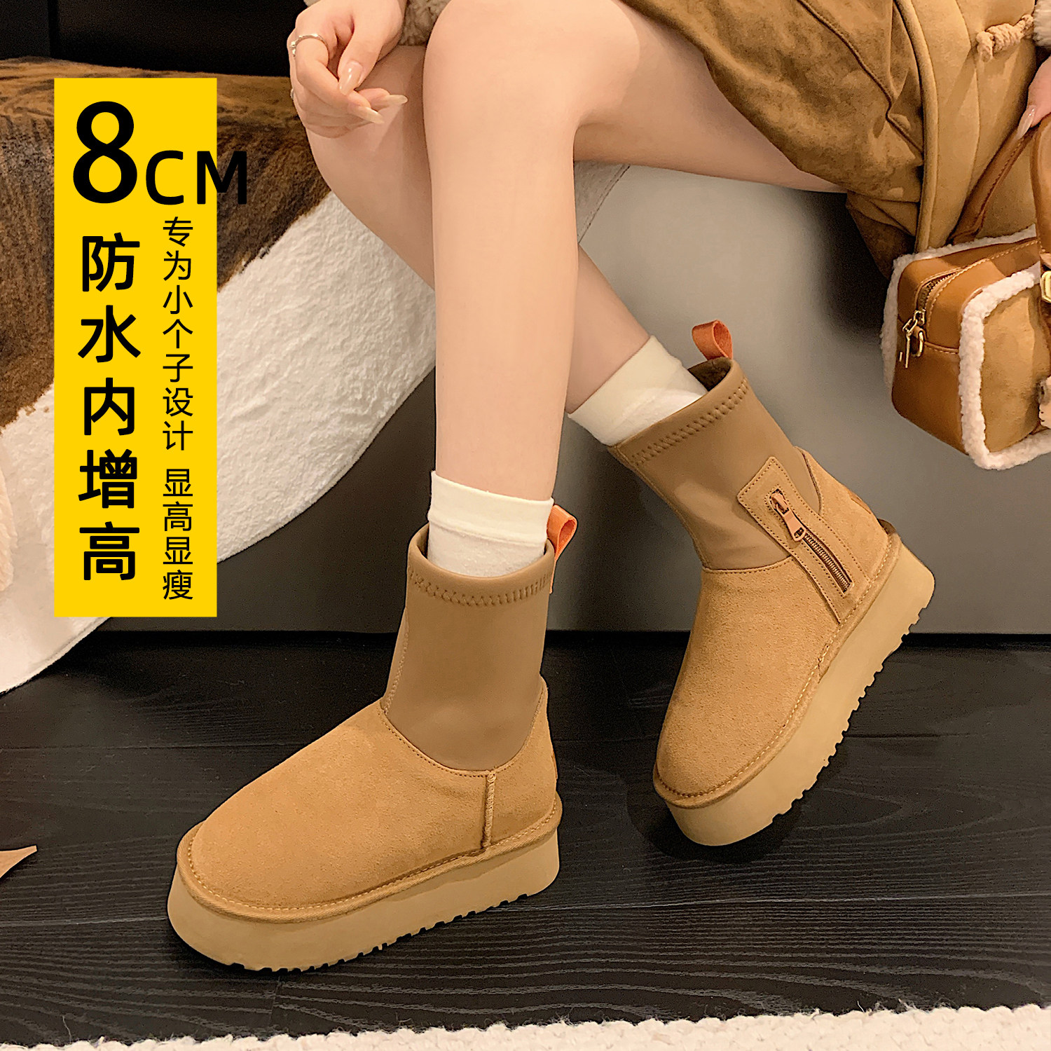 厚底内增高雪地靴女款2025新款冬季加绒加厚短筒真皮防水雪地棉鞋