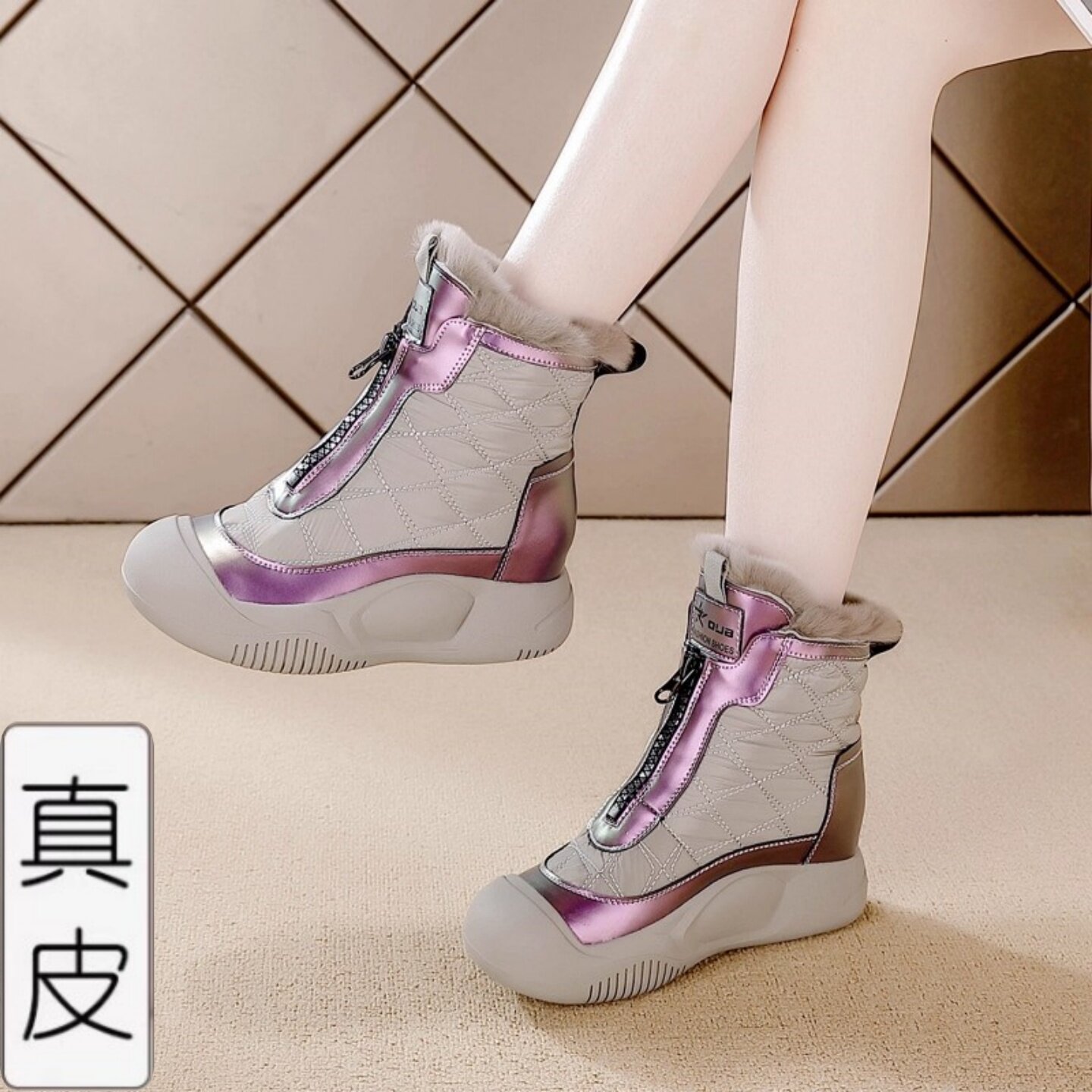 2025新款内增高厚底真皮防水雪地靴女加绒加厚棉鞋短筒低帮靴子女
