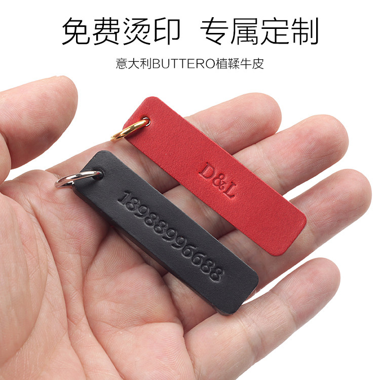 意大利植鞣牛皮情侣双面防丢刻字电话号码钥匙扣挂件礼品定制BV6H