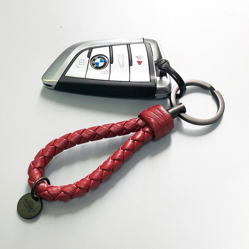 真皮车钥匙扣 男女羊皮编织挂绳汽车钥匙链 高档情侣创意挂件BV01