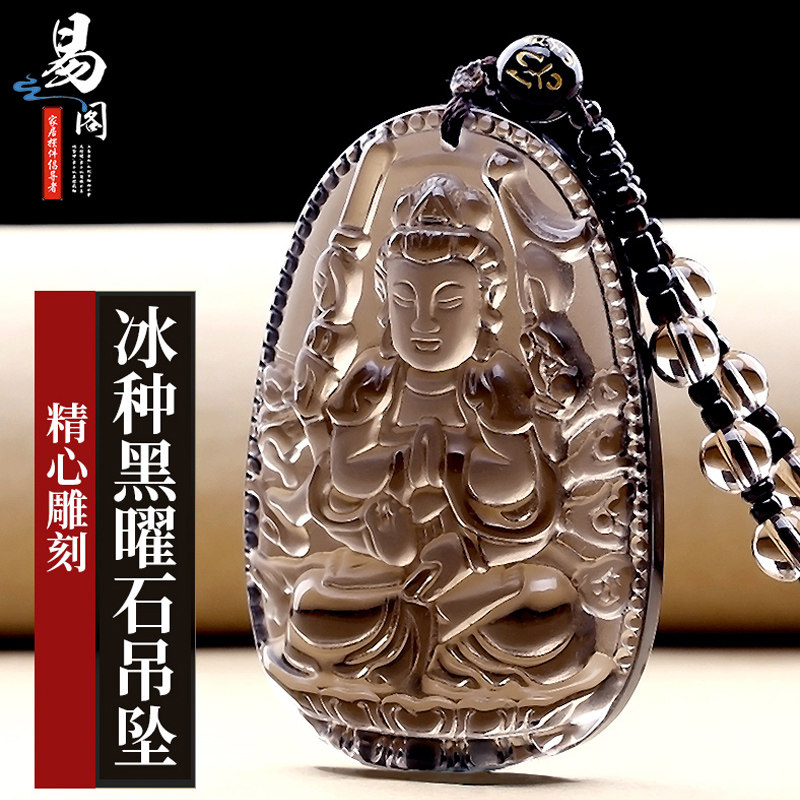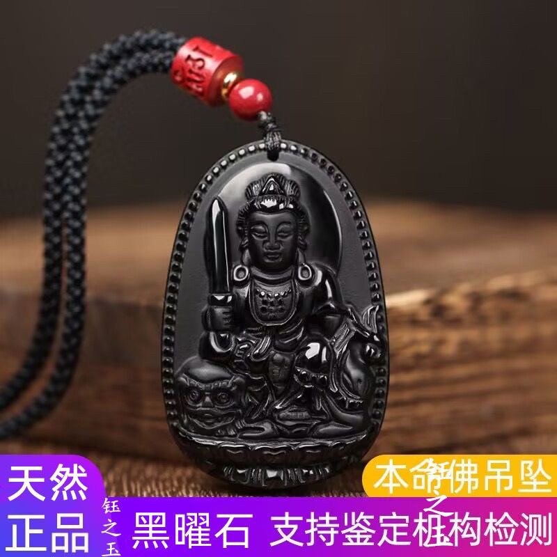 - 冰种黑曜石本命佛吊坠