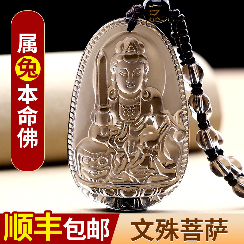 黑曜石本命佛吊坠男女项链文殊菩萨属兔猪羊挂件本命年守护神饰品