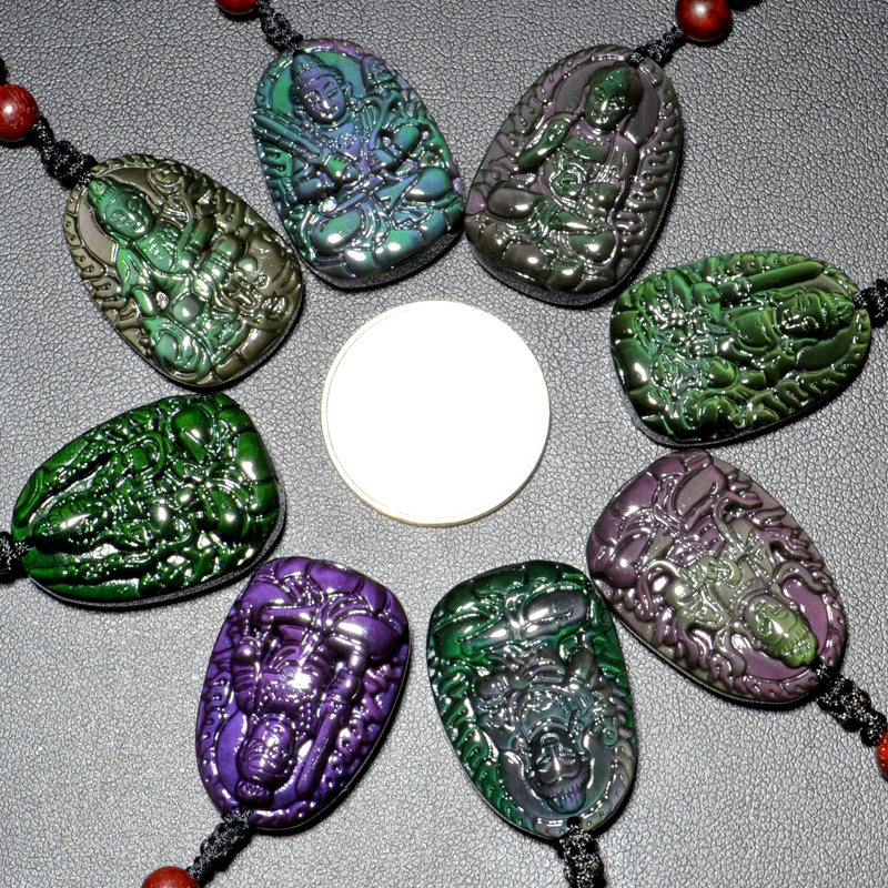 2026年天然彩虹眼黑曜石文殊菩萨吊坠生肖属兔本命佛守护神男女