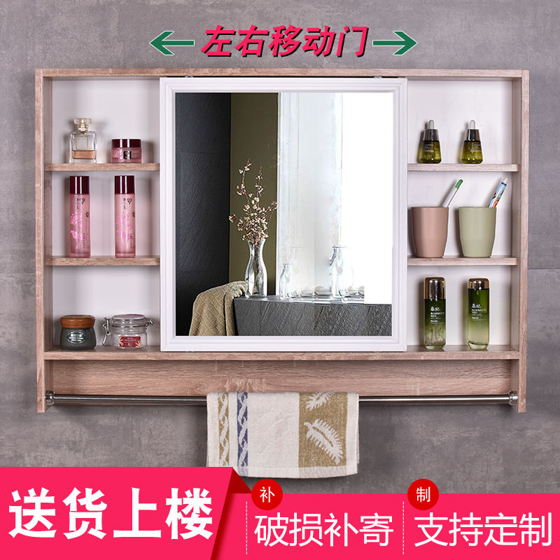 浴室镜柜组合推拉门挂墙式镜箱移动门梳妆镜收纳分层一体带置物架
