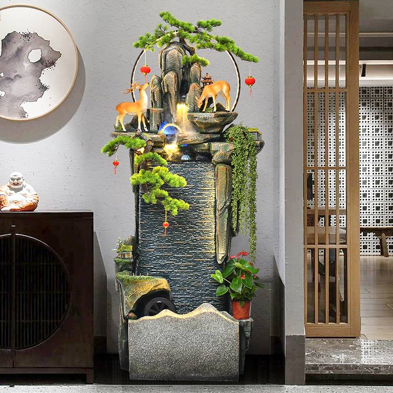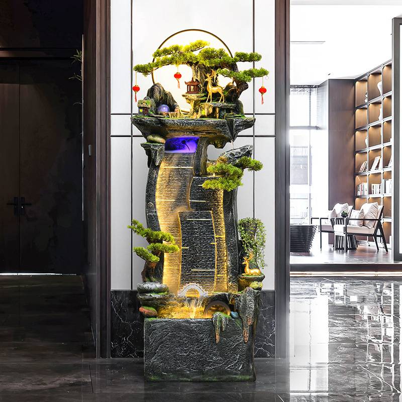 大型假山流水喷泉客厅水景摆件加湿器落地办公室家居水幕墙装饰品