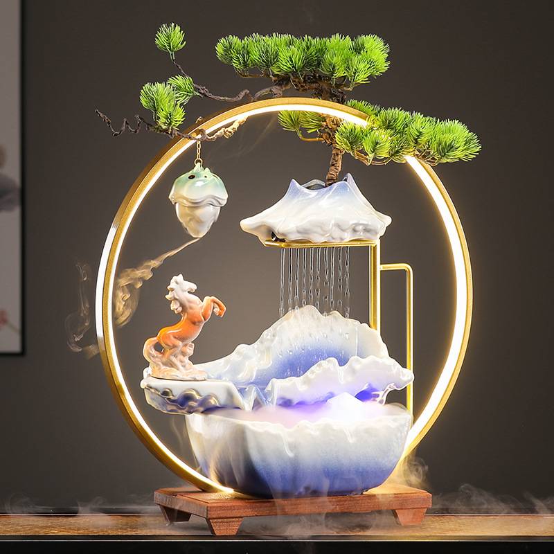 流水摆件创意假山喷泉循环加湿器陶瓷家居办公室桌面开业礼麦太保