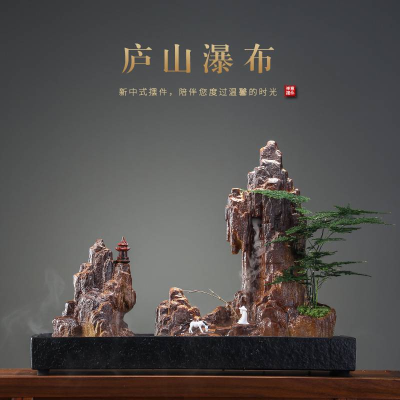 假山流水生财摆件办公室瀑布喷泉加湿器玄关客厅桌面家居软装饰品