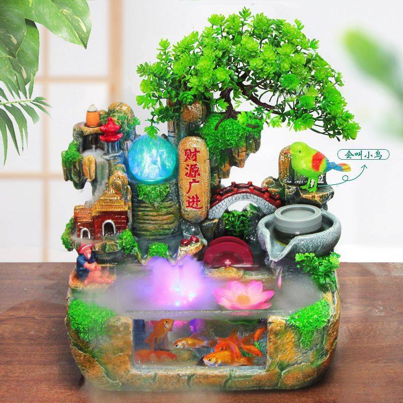田园假山流水喷泉鱼缸风水轮加湿器景观餐厅办公室客厅装饰品摆件