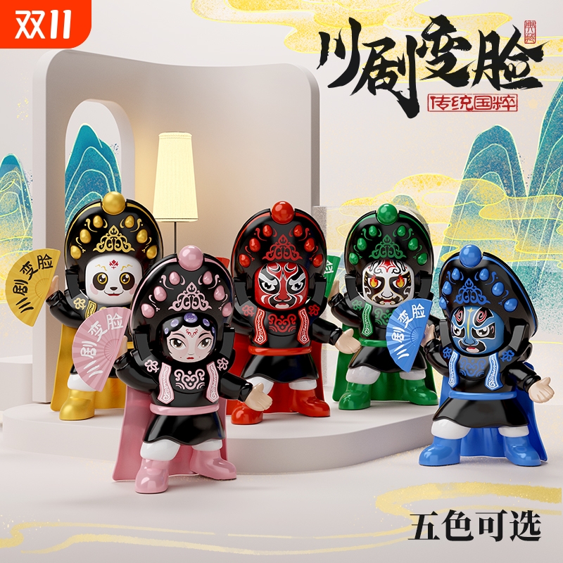 中国粹特色京川剧变脸娃娃8张脸谱熊猫手办公仔儿童礼物正版玩具