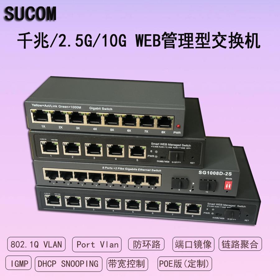 SUCOM管理型交换机8口2.5G支援VLAN POE LACP三层千兆交换机