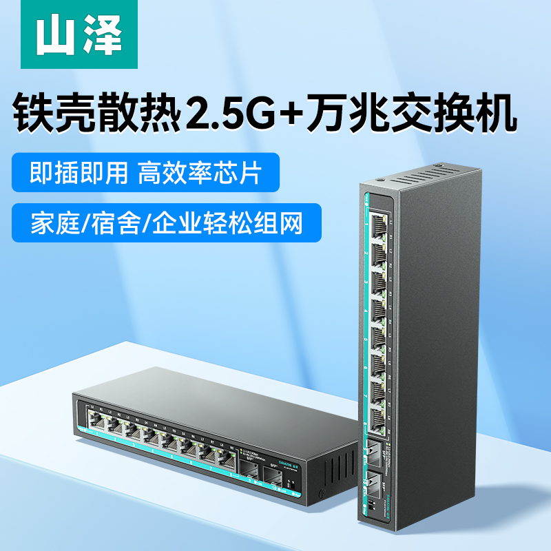 山泽5口2.5G交换机8口2.5G双10G万兆SPF光口企业监控网络钢壳交换器分流器猫棒光猫NAS适用家用网络扩展端口