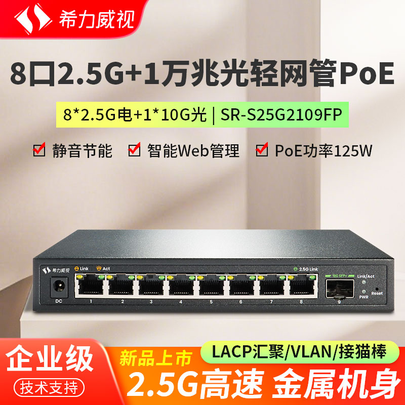 希力威视9口2.5G轻网管POE交换机8口2.5G1万兆光网络交换器分流器支持Vlan链路聚合AP摄像头网络供电器