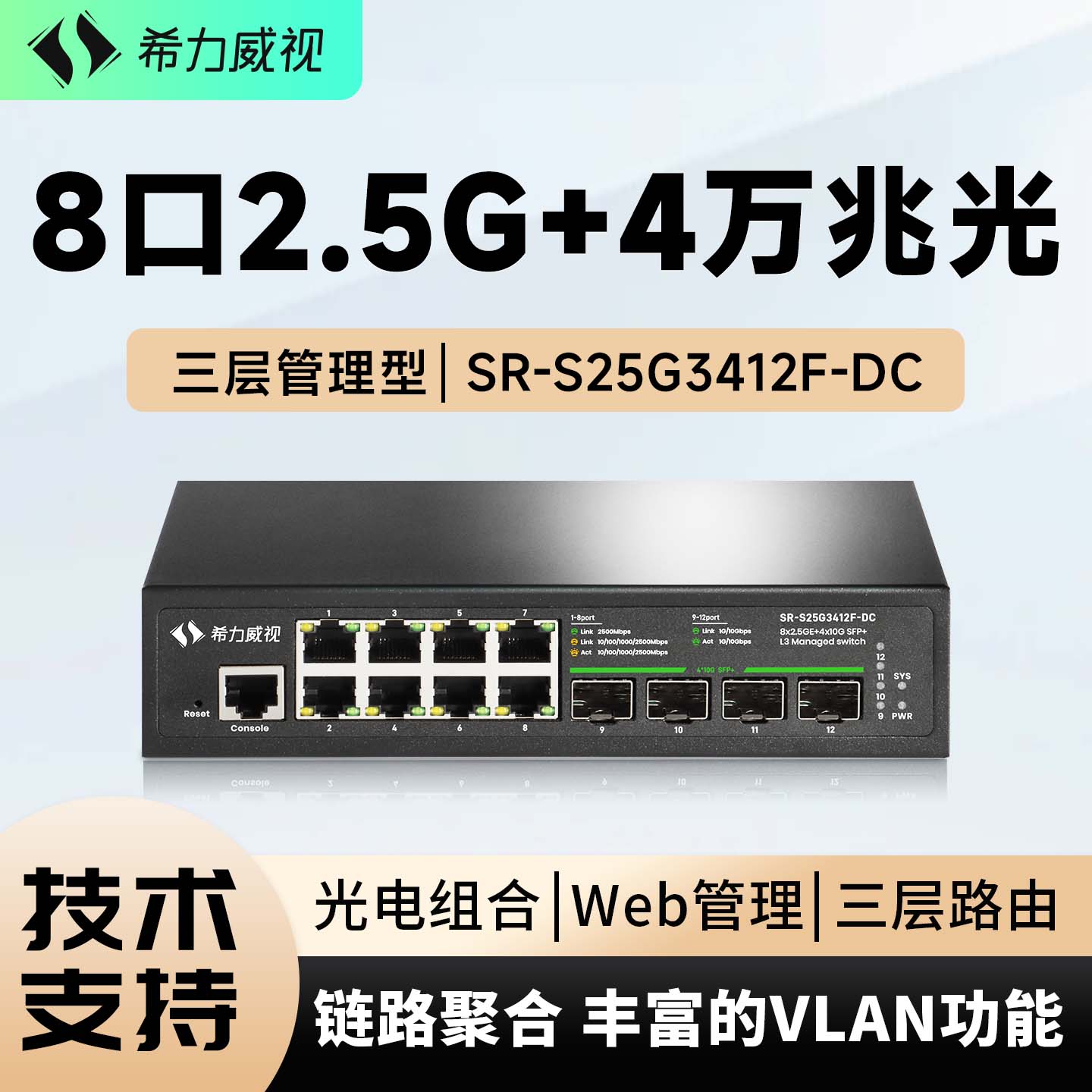 希力威视12口2.5G万兆交换机8口2.5G电4万兆光三层网管10G交换器VLAN划分LACP动态汇聚生成树网络分流器