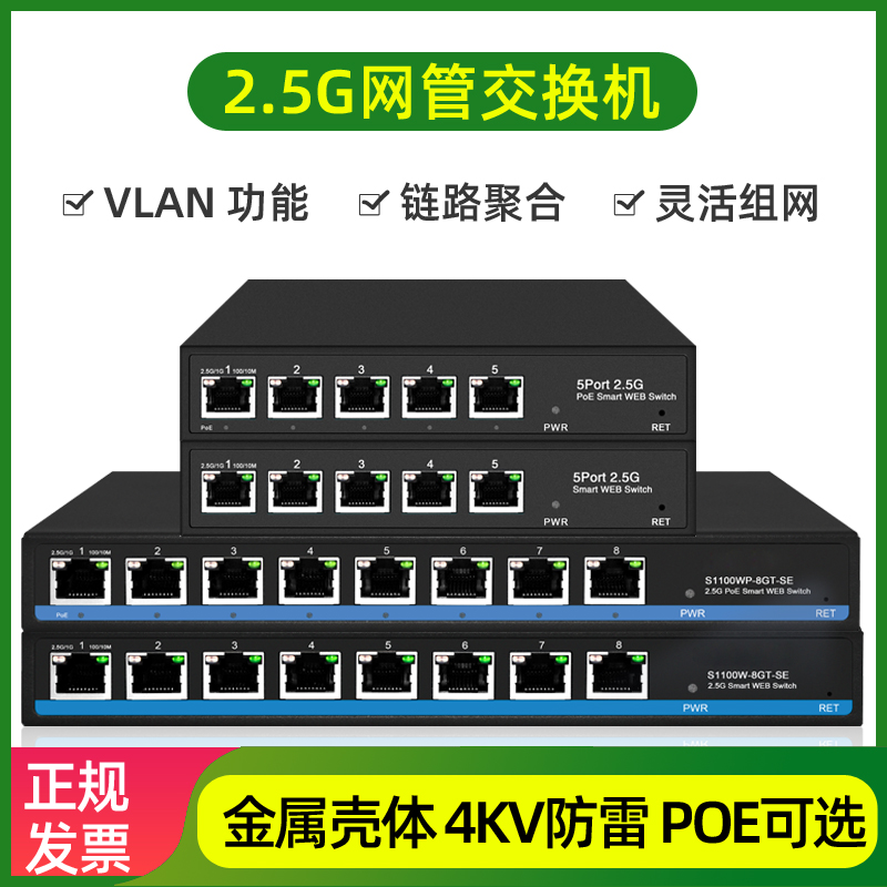 2.5G poe汇聚交换机8口万兆交换机网管vlan叠加lacp标准48V国标