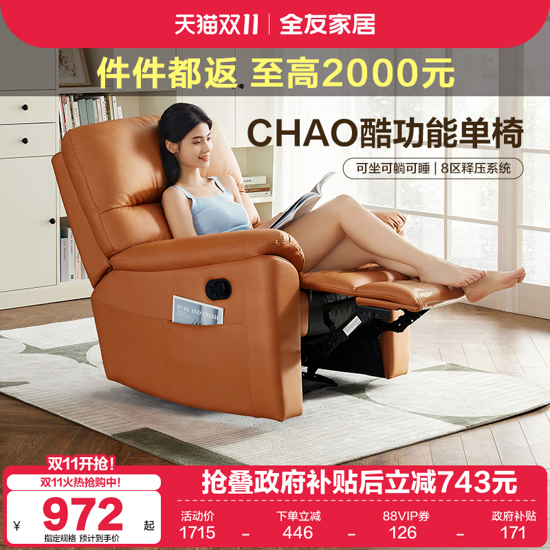 政府补贴全友家居简约现代多功能电动单人小沙发客厅休闲懒人躺椅