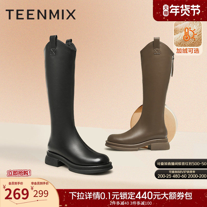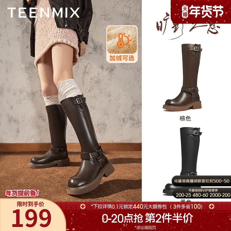 天美意复古厚底骑士靴西部靴长靴女高筒时装靴2025冬新款BM351DG5