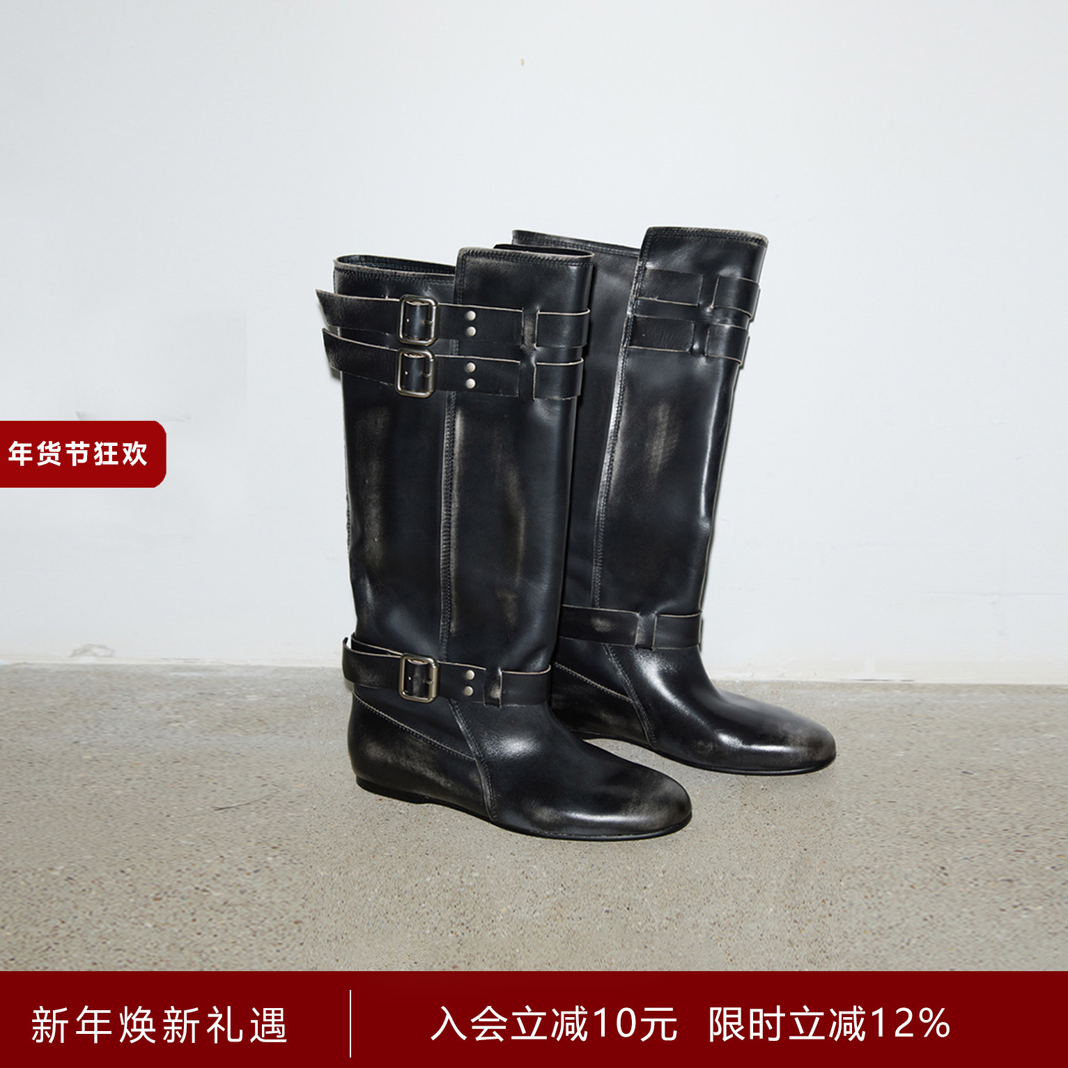cece coup 炸街vogue!10/23 新品 24FW 复古擦色骑士靴 高筒长靴