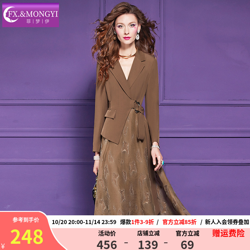 菲梦伊西装连衣裙女长袖秋季新款法式高级感简约气质中长风衣外套
