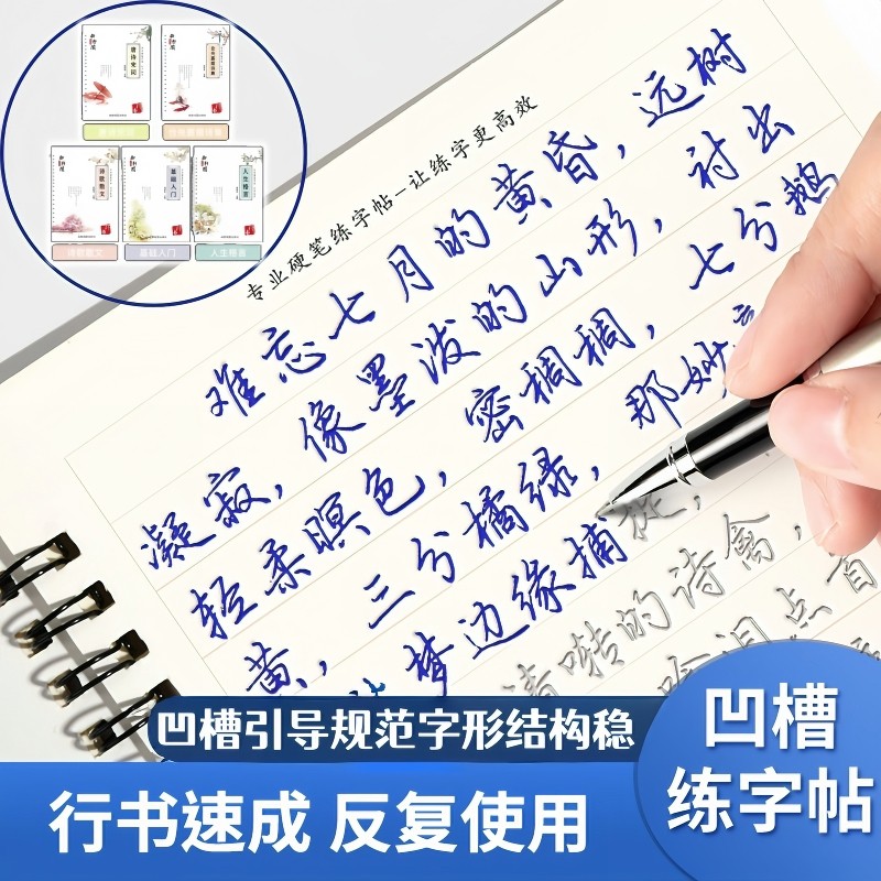 凹槽练字帖成人行书行楷书速成钢笔字帖硬笔男女生反复使用神器成年本板字体临摹初学者漂亮小中大学生书法贴