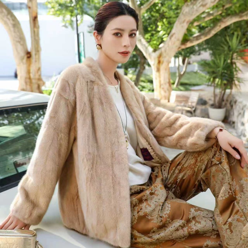 海宁2025年新款进口水貂整貂皮草大衣女立领中长款时尚轻奢潮外套