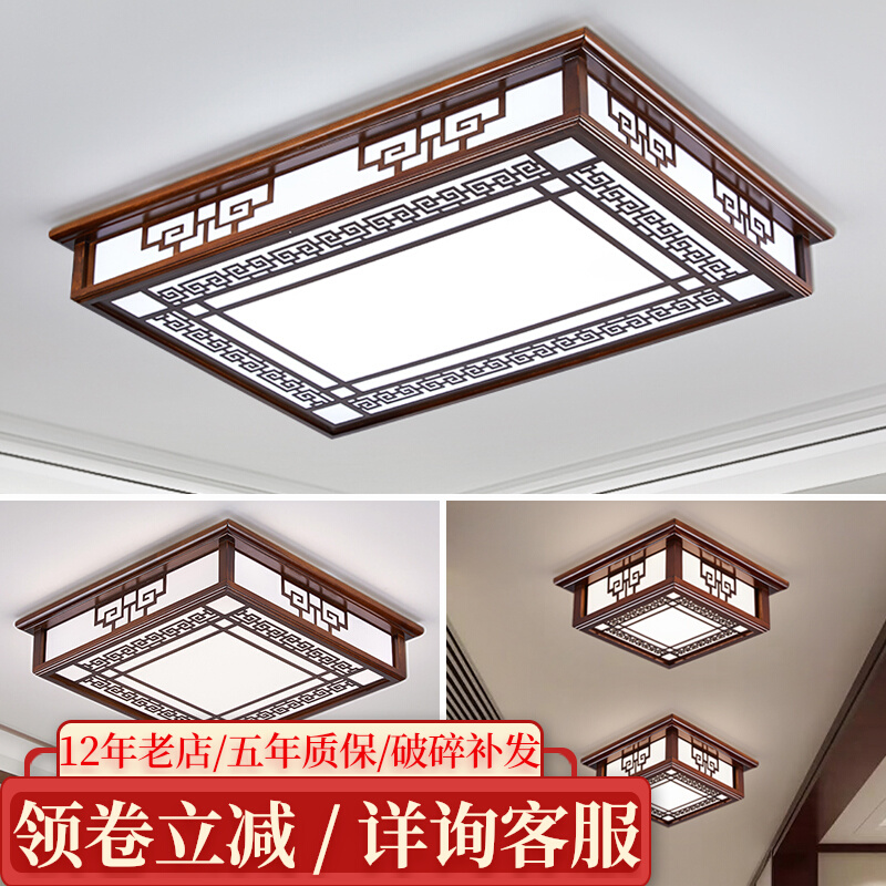 胡桃木色吸顶灯新中式简约书房卧室灯超薄阳台镂空长方形客餐厅灯