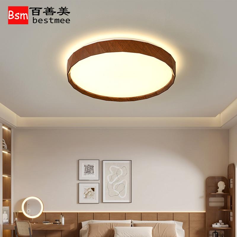 复古卧室吸顶灯极简胡桃实木怀旧客餐厅灯全光谱护眼led书房间灯