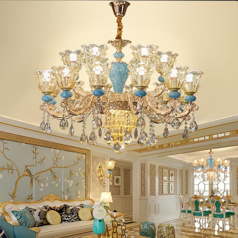 欧式客餐厅灯书房别墅酒店铺灯具中山房间主卧室现代轻奢水晶吊灯