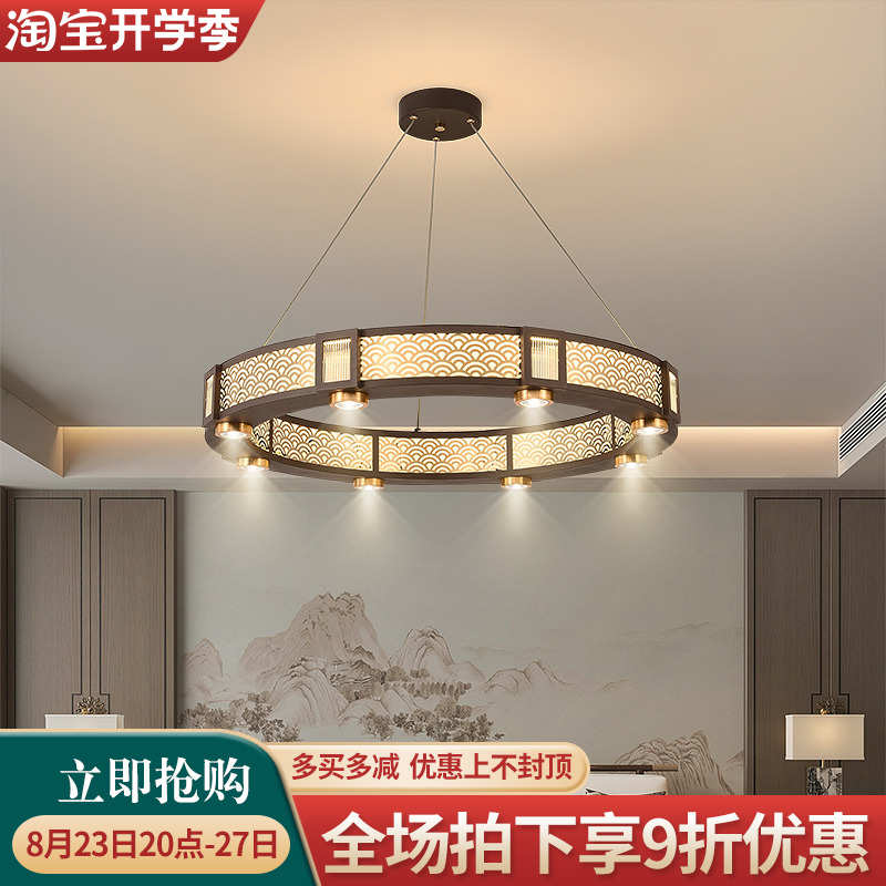 新中式圆形客餐厅灯带射灯现代经奢家用2024年新款酒店包厢间吊灯