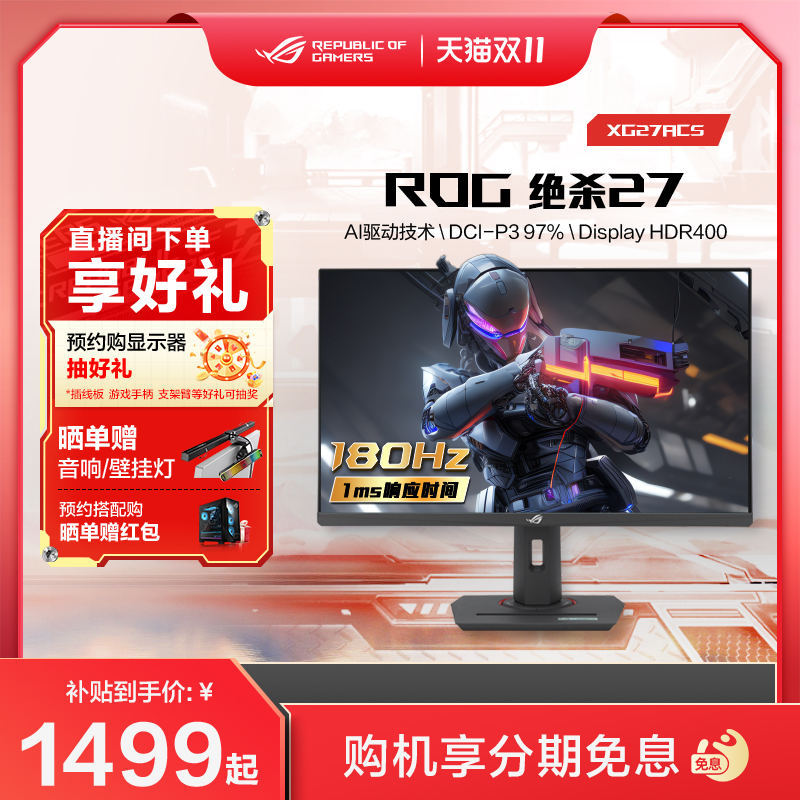 ROG 华硕2K白色显示器绝杀青春电竞台式笔记本电脑27英寸2K180hz小金刚vg27aq3a玩家国度G-SYNC IPS屏