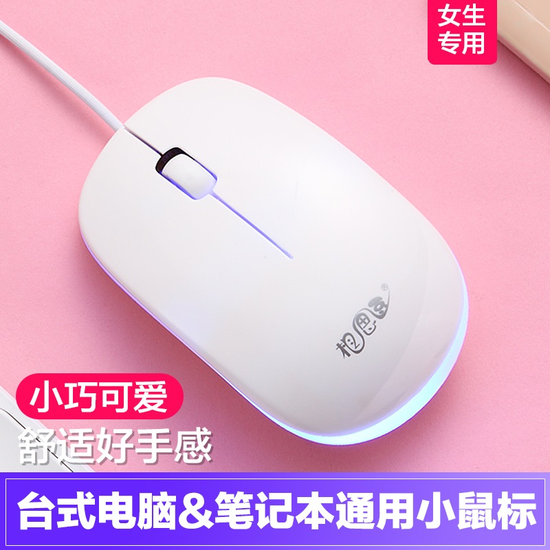 无声静音有线鼠标笔记本办公室家用女生可爱小巧台式电脑小手专用小号清新文艺简约少女心小型手白色粉色卡通