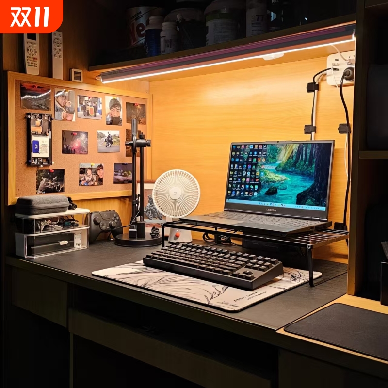 笔记本支架可放键盘电脑增高架台式显示器底座高度调节桌面办公宿舍桌面屏幕支撑托架双层木白色显示屏置物架