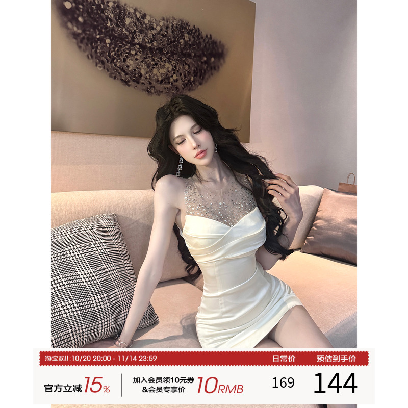 牛了牛了 名媛吊带连衣裙女2025秋季新款性感包臀裙抹胸拼接裙子