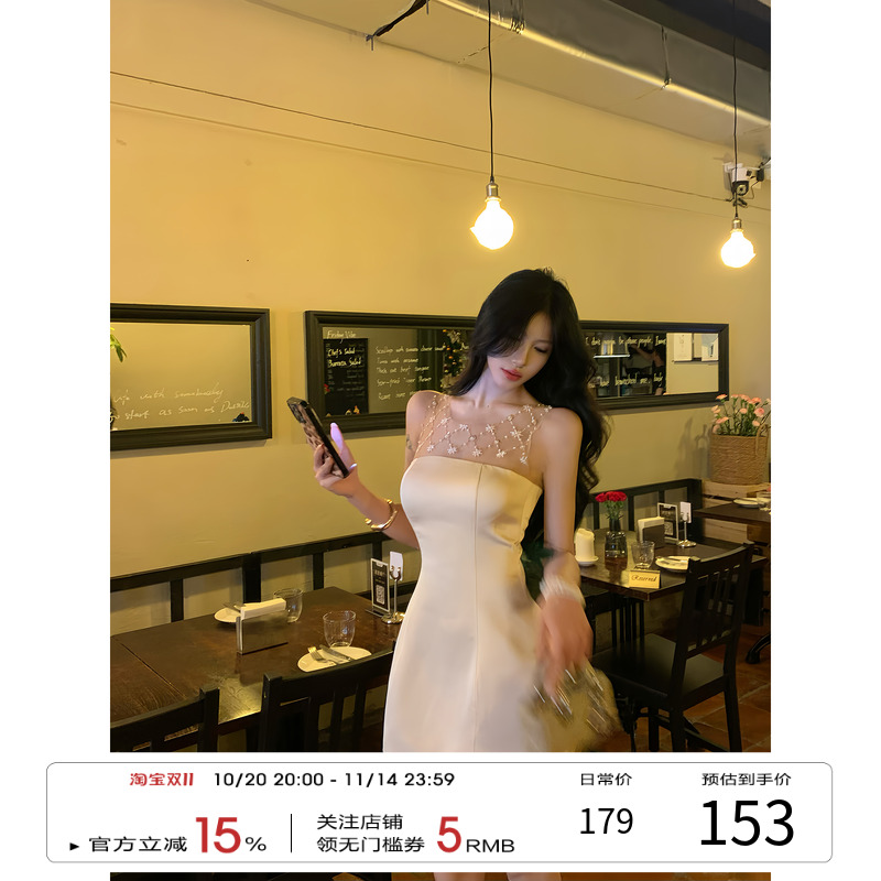 蝴蝶结名媛挂脖连衣裙女夏装亮片拼接显瘦包臀裙收腰又甜又辣裙子