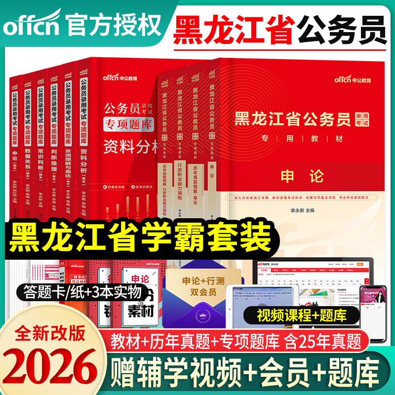 黑龙江省考历年真题试卷中公教育2026年黑龙江公务员考试用书真题卷子套卷行测和申论教材模拟考公刷题资料库公考2025公务员省考