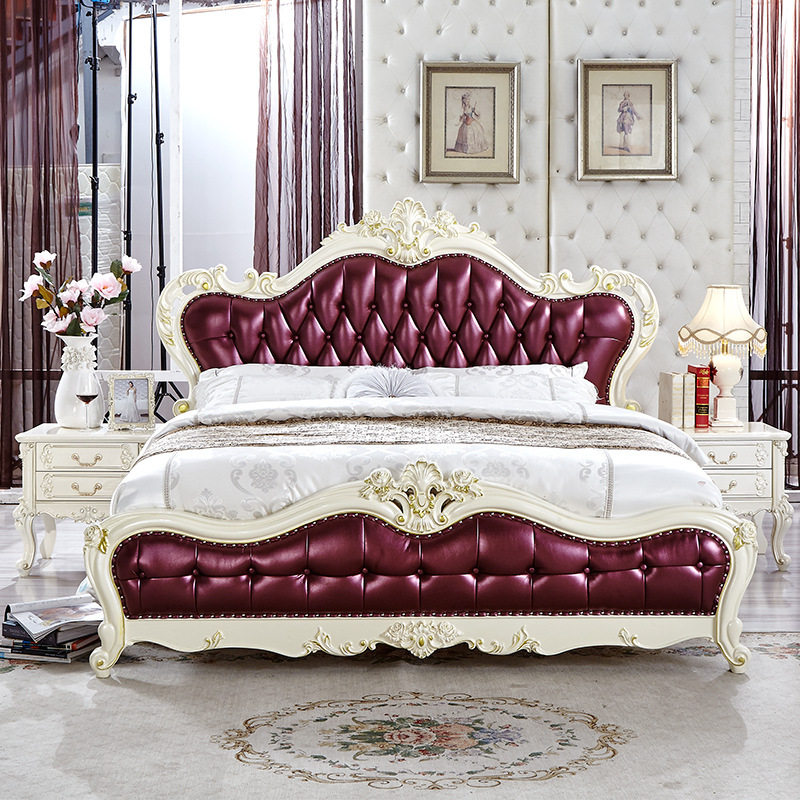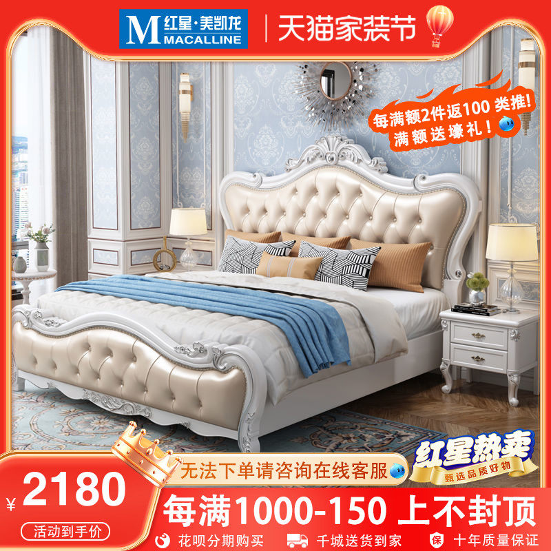 政府补贴榉木全实木床法式主卧1.8米双人大床欧式2*2.2m真皮婚床