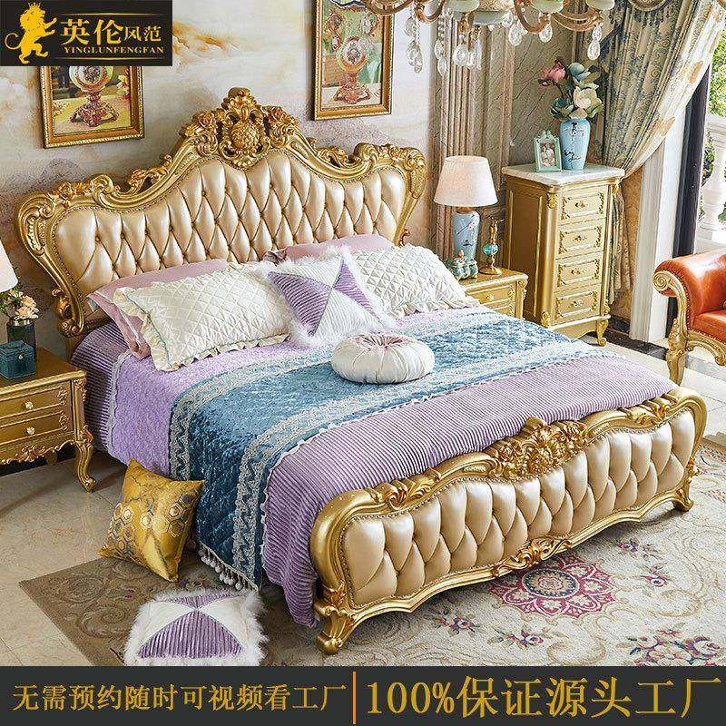 欧式全实木床1.8米真皮双人床奢华别墅法式大床主卧储物高箱婚床
