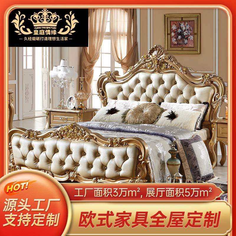 政府补贴欧式全实木床主卧1.8米双人榉木大床欧式2*2.2m真皮婚床
