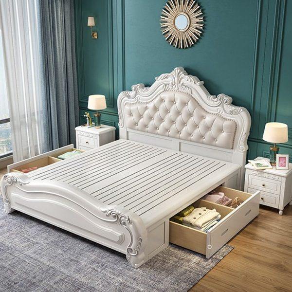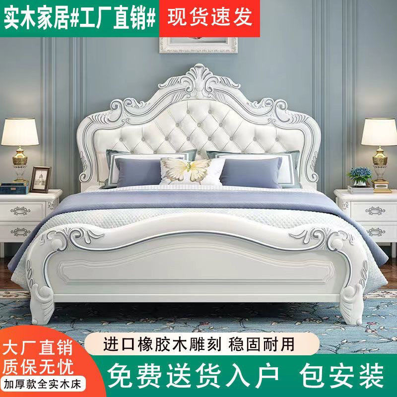 法式床全实木欧式雕花公主床美式复古主卧双人床白色高箱储物婚床