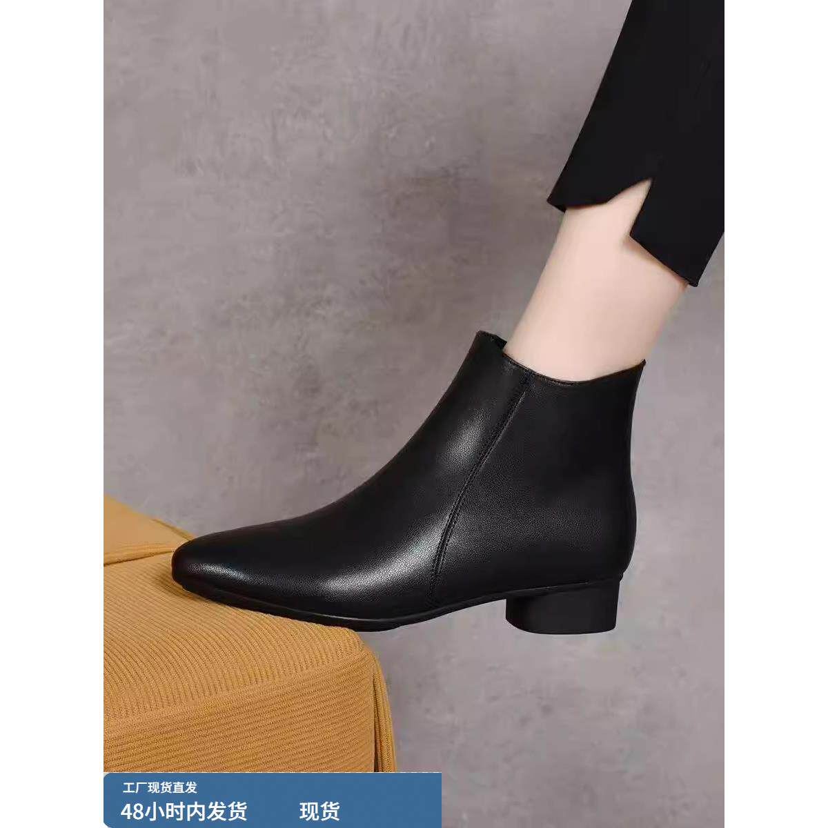 2025秋冬新款真皮软皮羊皮短靴女单靴休闲低跟平跟马丁靴裸靴百搭