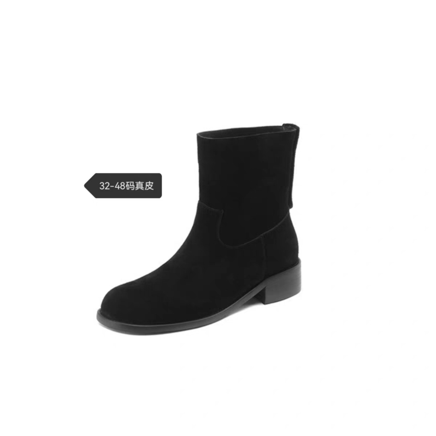 短靴牛反绒平跟女靴41.42.43.44.45.46.47.48圆头粗跟西部靴裸靴