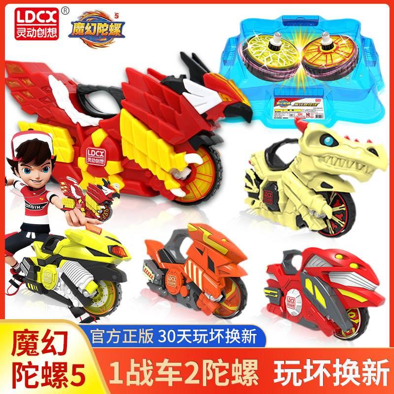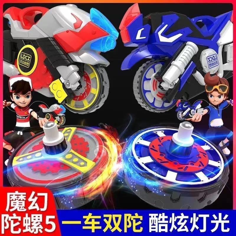 灵动创想魔幻陀螺5摩托机车音速玩具男孩儿童新款发光坨螺车套装